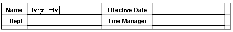 Similarly, individual table cells can have borders. If your form is set up in a table (possibly using form fields to be filled out on screen), you can have a bottom border on the cell where the answer will go. This is the technique used in many of the templates supplied with Word, such as the Invoice and Purchase Order, which may usefully be studied to learn more about this approach. Using table cell borders is almost always the best method for any forms that may – ever – be filled in on screen. You frequently need to separate adjacent lines from each other; and if using cell borders, the simplest way to achieve this is to create “dummy” cells with no borders, as shown in Figures 2 and 3. One common error form designers make is to create a single table for the entire form. In general, forms look and work much better if you create several smaller tables, separated by headings (for which you should use Heading styles).