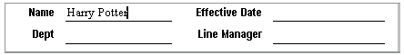 In a complex printed form you may wish to use more than one of the above techniques, but if you keep them all in mind, you will be able to select the most appropriate for any given application. (In a complex form that may need to be filled in on screen, sticking to table borders keeps things simple).