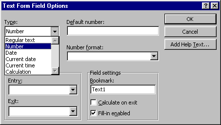 However, if you want to perform some validation that is not catered for by the above dialog, you will have to use a macro, assigned as the Exit macro for the appropriate formfield using the above dialog.